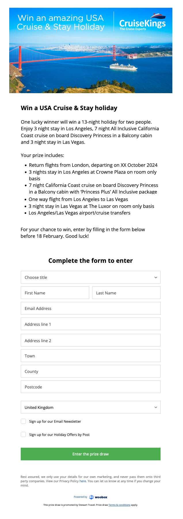 Win an amazing USA Cruise & Stay Holiday