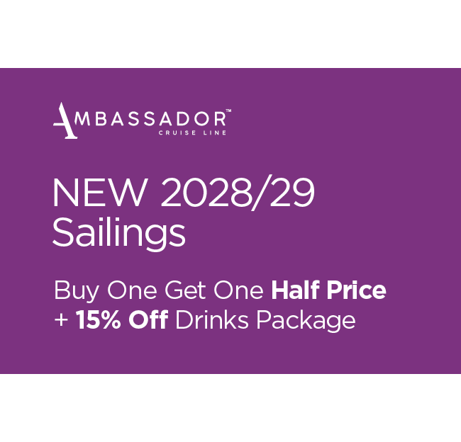 Ambassador Cruises are delighted to introduce you to the NEW Summer & Winter 2028 and Spring 2029 season. Visiting 108 ports, 30 countries and sailing over 130,000 nautical miles. With an even greater choice of carefully crafted itineraries and captivating destinations, there’s something for everyone, whether you're seeking culture, coastlines or complete escapism.