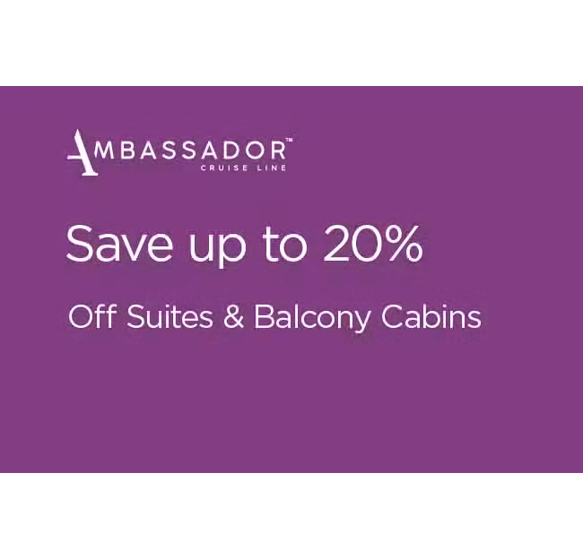 Step onboard Ambassador and Treat Yourself to a memorable escape with up to 20% off Balcony and Suite cabins^. Enjoy a private balcony with peaceful sea views and a suite that’s just the right size for relaxing. It’s the perfect way to unwind and leave the everyday behind, because moments matter.
