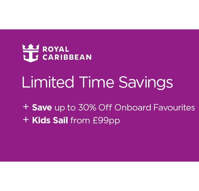 Set sail Royal Caribbean with an incredible offer of Fantastic Savings^ plus Kids sail from just £99pp^^. From the Caribbean’s turquoise waters to Europe’s breathtaking shores, this is the ideal time to secure your next unforgettable adventure. Book now and get ready to set sail!